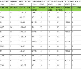 Pour les paroisses de Beuzet, Bossière, Ernage, Gembloux, Les Isnes, Lonzée, Grand-Leez, Grand-Manil, Mazy, Sauvenière de l’Unité pastorale de Gembloux :
